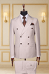 Evoking the sunny elegance of natural tones, this light beige double-breasted men's suit seduces with its ultra-lightweight premium fabric, offering optimal breathability and a perfectly structured fit. Its slim fit sculpts the silhouette while ensuring fluid comfort, enhanced by deep notched lapels and six delicately engraved tone-on-tone buttons. The understated flap pockets and perfectly executed back vent bring freedom and allure, while the mid-rise straight-leg trousers ensure an elegant fit without compromise. This luminous and refined light beige hue makes it an essential choice for a daytime ceremony, a summer cocktail party, or a sophisticated business meeting.